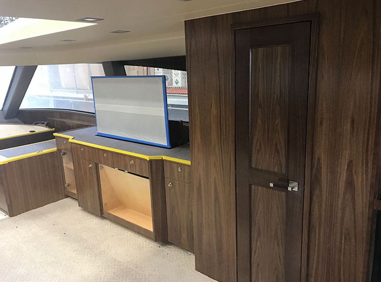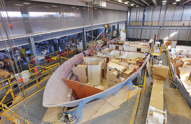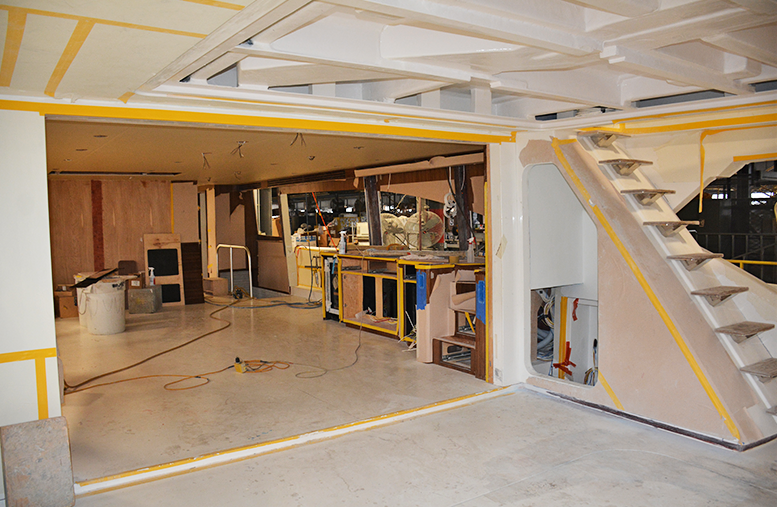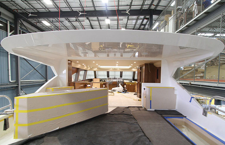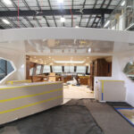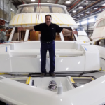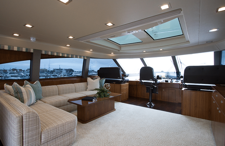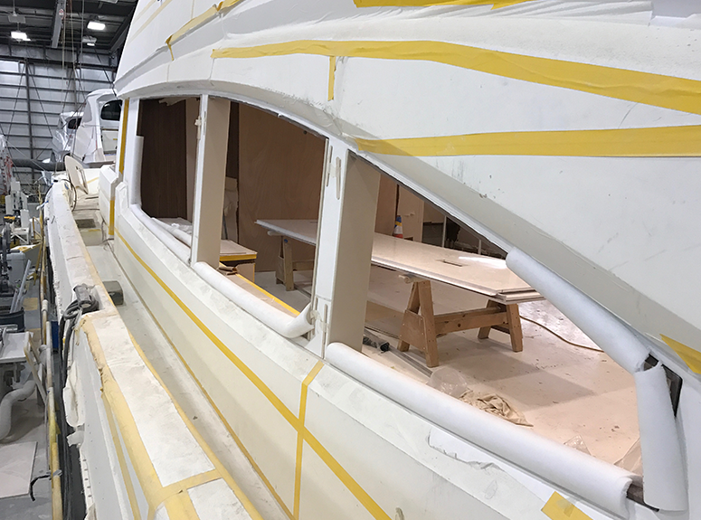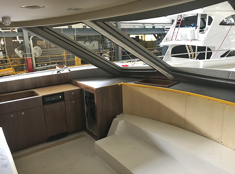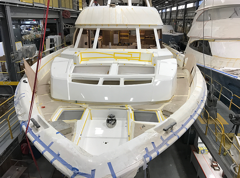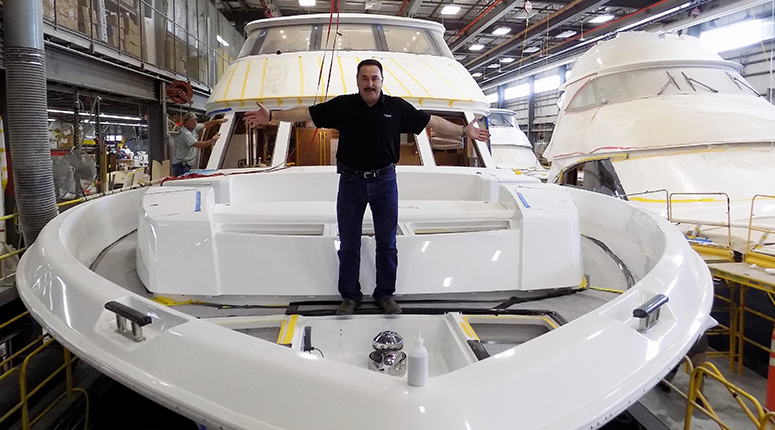 It is extraordinary to witness the construction of this yachting behemoth. Watch the videos below to get a glimpse of what it takes to join the deck piece and cabin top to the hull at just the right time to keep the production lines moving right along. Be sure to contact your Bluewater Sales Professional ahead of the show to secure a boarding time for this mighty motoryacht.