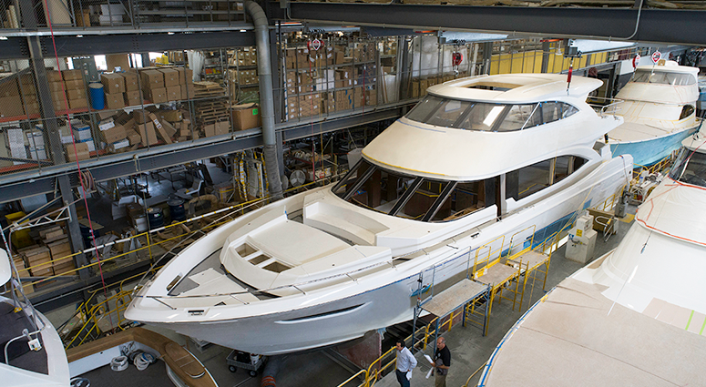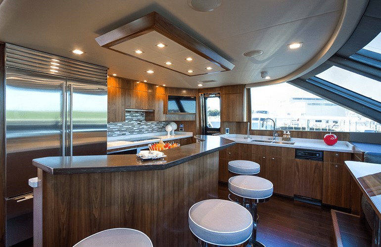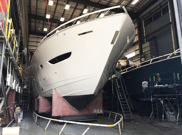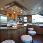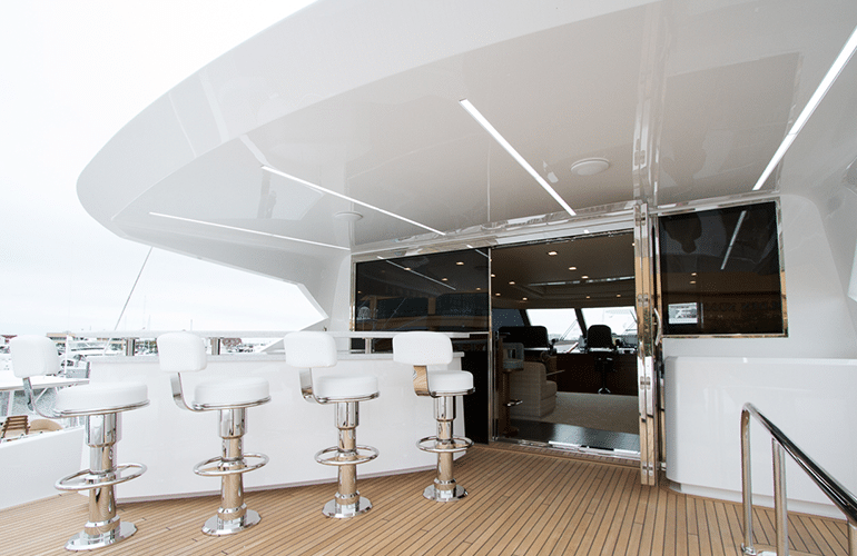 Next in line is the grand 93 Motoryacht, now in production and scheduled for a debut in the 2017 Fort Lauderdale Boat Show. This model will feature a five stateroom, five head layout for guests, plus two additional crew quarters, making her fantastically outfitted for extended trips or charters.
