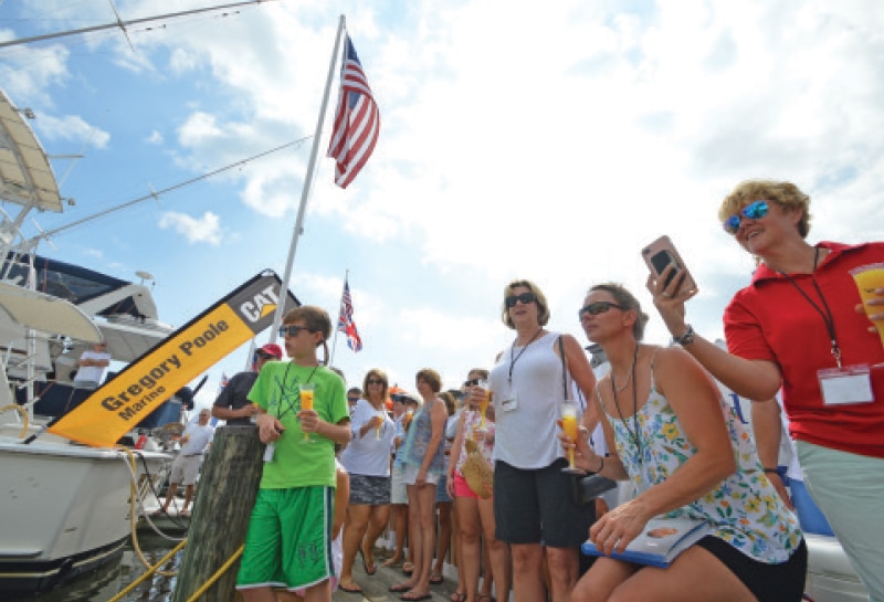 Lunch was followed by a fun cornhole tournament and a wine tasting compliments of the St. Michaels Winery. Saturday welcomed boat christenings, sea trials and tours of the Chesapeake Bay Maritime Museum which is situated just a short walk from St. Michaels Marina. The fun and camaraderie continued into the evening, with cocktails and hors d’oeuvres on the Navy Point Deck. An Eastern Shore Feast was held in the Small Boat Shed of the Chesapeake Bay Maritime Museum which included music and dancing for guests well into the night.