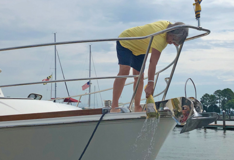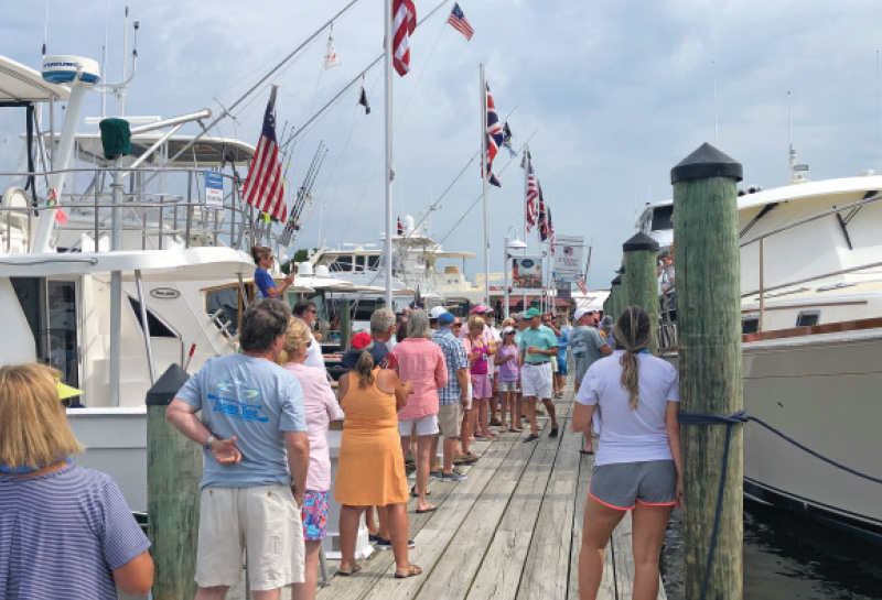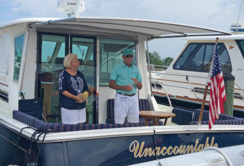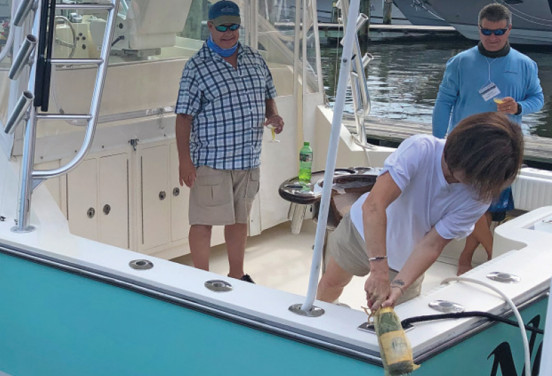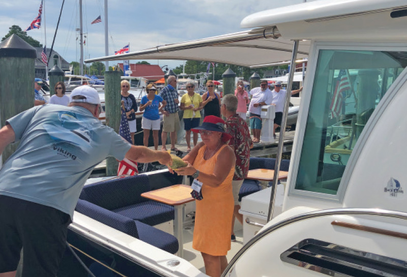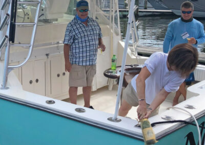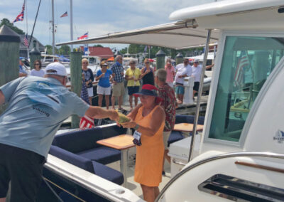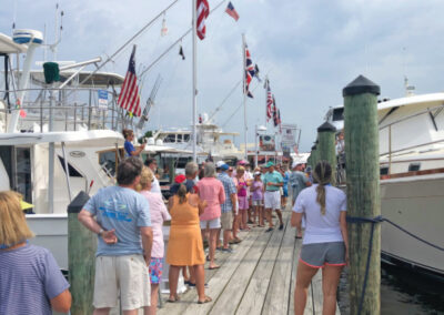 The highlight of every Summer Cruise is the christening ceremony, where proud owners are given the chance to showcase their new boats and tell how they picked their names. The 2020 Summer Cruise did not disappoint, and included christenings of a 78′ Marlow, 52′ Sabre, 35′ Carolina Classic, and a pair of 41′ Back Coves! After toasting each other with mimosas, the group took some time to explore the town, sit by the pool, and relax before the closing dinner at nearby St. Michaels Crab and Steak House.