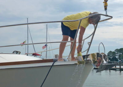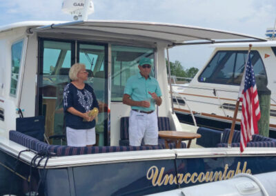 The Summer Cruise began on Thursday evening with a celebration on the docks featuring delicious coastal fare from nearby Foxy’s Harbor Grille and libations from Papa’s Pilar Rum. It was evident that everyone was eager to be together and grateful to enjoy the company and cocktail hour. “Not even Tropical Storm Fay’s heavy rains and wind could dampen our spirit or deter our group from kicking off a fun weekend,” reflected Bluewater’s Event Coordinator Lauren Stevens.