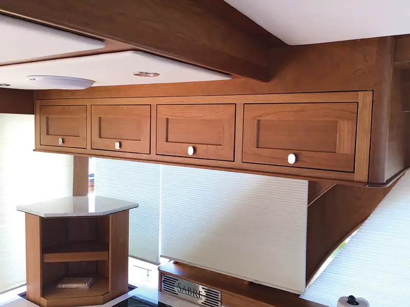 Being their fourth Sabre and benefitting from a long relationship with Bluewater and Sabre, the couple knew what to expect during the build process and had frequent meetings with Sabre’s National Sales Manager, Lynn Beaudoin to discuss ideas for customizations. Nick explains, “Tina collaborated with Sabre to make the galley work better for liveaboard cooking. Custom items include a Miele oven, custom cooktop, electrically raised cutouts in the countertop for storage and electrically lowering overhead cabinets, plus an electric grill in the cockpit.”
