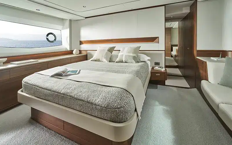 The interior is as luxurious as it is spacious, with exquisite detailing and high-quality materials joined seamlessly throughout by Princess’ skilled craftspeople. Owners can choose between four interior wood finishes, with the Walnut option on display in this North American premiere yacht.
