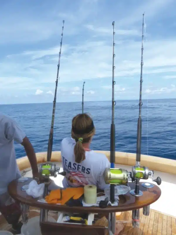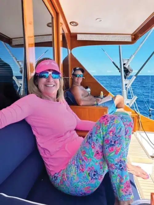 In 2015, Cheryl won the White Marlin Open title with a 94-pounder aboard the Backlash. Her succession of boats is readily familiar to anyone paying attention to mid-Atlantic tournaments, including Promises Too, Croupier, and Captain Cheryl. In describing what sets apart her latest custom yacht, Cheryl Anne, she explains, “Wayne and I would walk the docks at North Palm Beach Marina, and always admired the design and beauty of any Rybovich, especially the Ruthie, a 32’ walkaround.” Always on the lookout for one of these classics, McLeskey enlisted Bluewater Sales Professional Matt Serafin when it was time for a change, and in a way, honor another of her memories with Wayne.