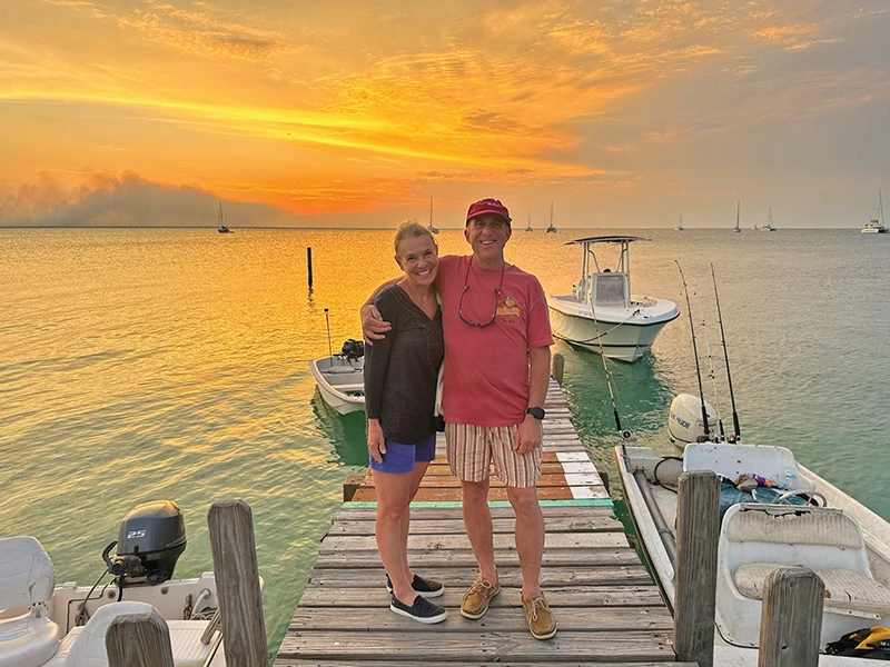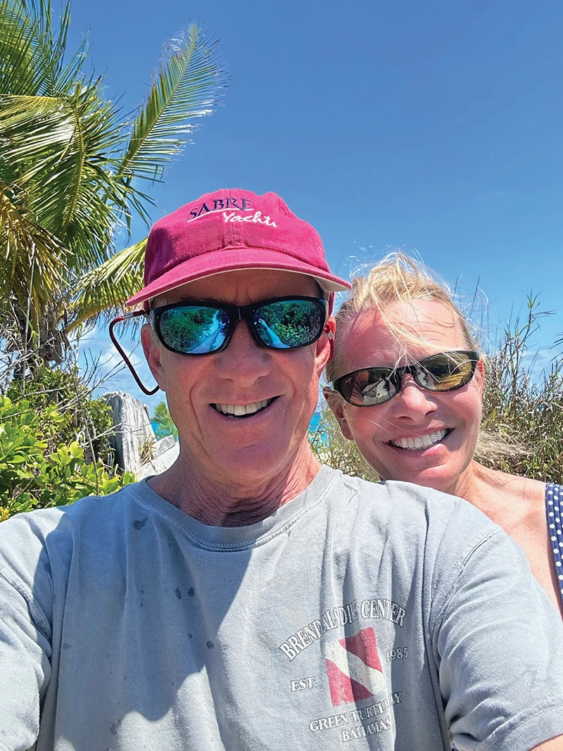 Jack and Caroline receive many compliments on their 48 Sabre and have welcomed couples for tours aboard the boat, some with older Sabre models and some with other styles of trawler and Downeast boats. As they’re gaining knowledge from the boating community, they’re also settling into a routine to make the best of their travels. “The groove we’re getting into for the Bahamas cruising…” Helmly explains, “…you wake up and check the weather. You need to know what’s out there and what’s coming in from what direction and where you should anchor to be protected. Check your tides and winds and plan your next few days.”