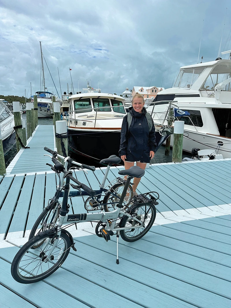 This Bahamas excursion included grilling on the boat under the Sureshade and plenty of meals from the galley that the Helmlys rave about. It is clear they love their boat! The performance, the ease of maneuverability, the layout and that Downeast charm. Meeting countless people at marinas and in remote areas was another big highlight of their trip. “We anchored near Nunjack Cay with a bunch of sailboats and went to shore by dinghy and met people on a remote beach. They told us about areas we would have never found on our own,” Helmly says. They also biked nearly 20 miles in a single day—the full length of Elbow Cay—and stopped at three different eateries along the way.