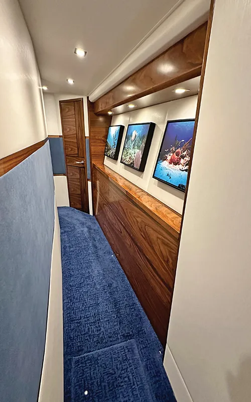 Interestingly, Chris explains that when he initially put a deposit down at Viking, it was for a 68’ Convertible. “There was a 68 and a 72 next to each other on the production line and they told me I could choose between either one.” The more he thought about it, the more confident he became on going big and making the most of the opportunity, “Eventually I told Wyatt [Bluewater’s General Manager] and Clark, ‘Aw, just make it the 72 and put the big engines in and we’ll have the extra space in the master stateroom.’ I guess you could also contribute it to Clark and Wyatt being great salesmen!”