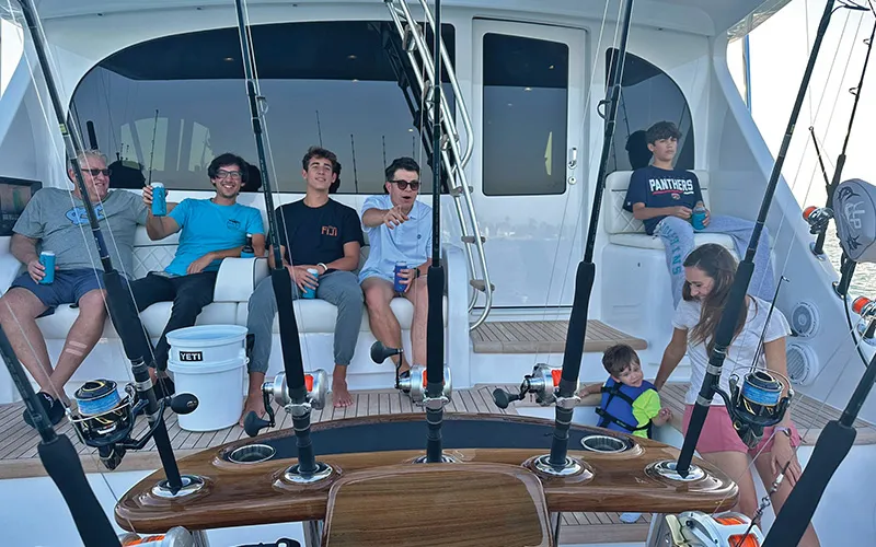 After all that research and testing, Chris came to a conclusion: “Because we were going to use the boat as a family not just as a fishing boat, I really wanted something big enough to have both the day head and the space to use the boat for more than just fishing.” That meant focusing on even larger models than what they had previously sea-trailed in order to find their ideal Viking Yacht.