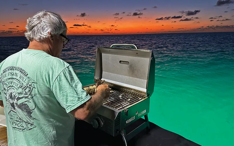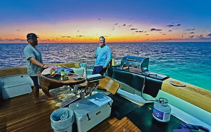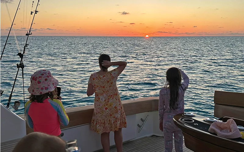 Next up, the Wordens rendezvoused with Capt. Todd and the boat in Nassau for a cruise through the Exumas island chain in The Bahamas, with their son’s young family joining them aboard. They fished and explored by day while staying out at anchor each night for most of the trip, making good use of that upgraded space in the 72. However, Chris points out they did make reservations at Highbourne Cay Marina to join in on the bonfire for a night. It was their two young granddaughters’ first trip to The Bahamas and the family was clearly excited about sharing these experiences and making new memories together.