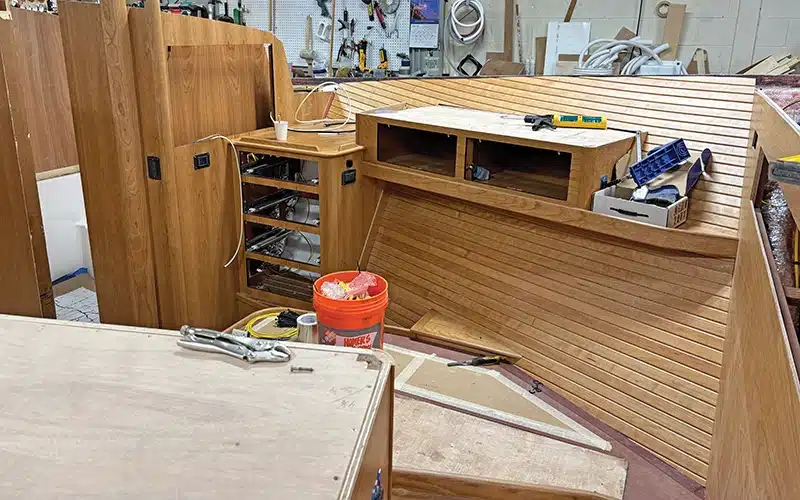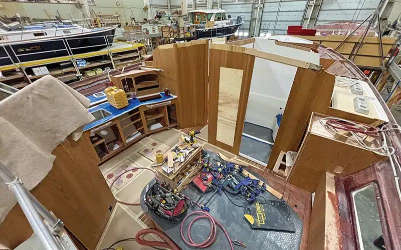 Sabre’s flagship 58 is built from start to finish in the Back Cove facility, while only the hull of the Sabre 48 is built in Rockland before being shipped south to the original Sabre facility in Raymond. A 58 Sabre was in production during the visit, so the Bluewater team had the chance to see the largest model currently in production.